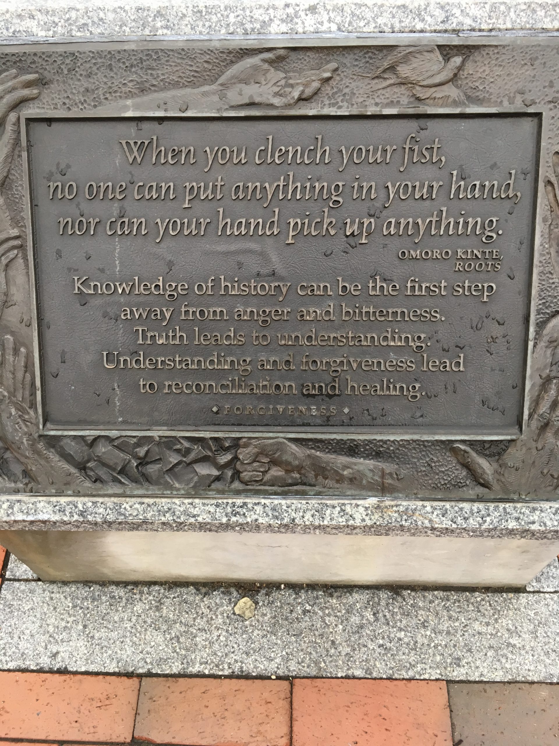 In 2002, a memorial was dedicated in the city dock section of Annapolis, Maryland, to mark the arrival of Kunta Kinte. Nearby is a memorial depicting Haley reading a story to young children gathered at his feet, which delighted me when we stumbled across it a few years ago. Just a simple scene, but it’s a powerful reminder that stories can change the world.