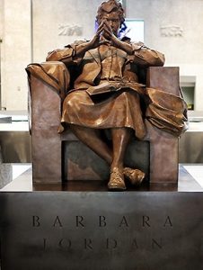 I frequently travel through the Austin airport and whenever I do, I always try to stop at least briefly at the statue of Barbara Jordan to honor her remarkable life. Jordan was the first African American woman in in the Texas Senate (1966-72) and the first African American woman from the South elected to the U.S. Congress (1972-1978).